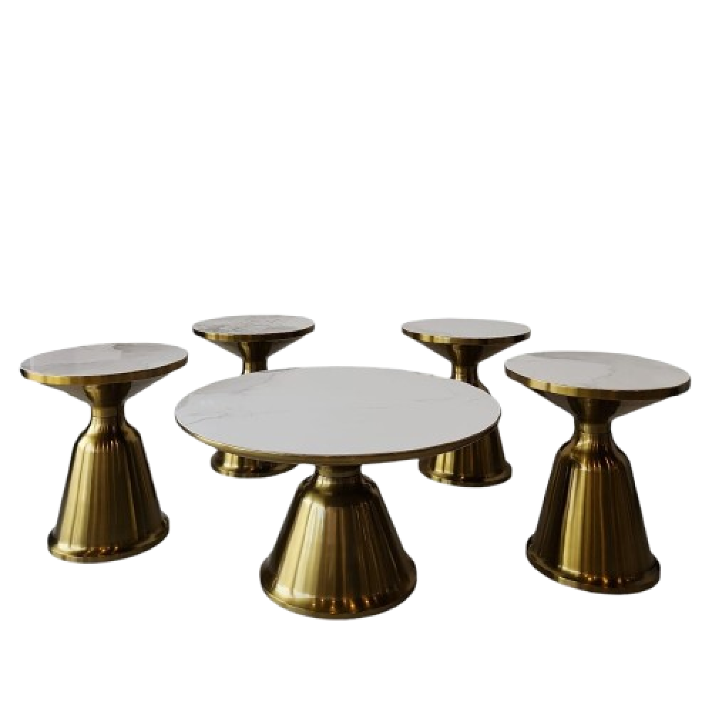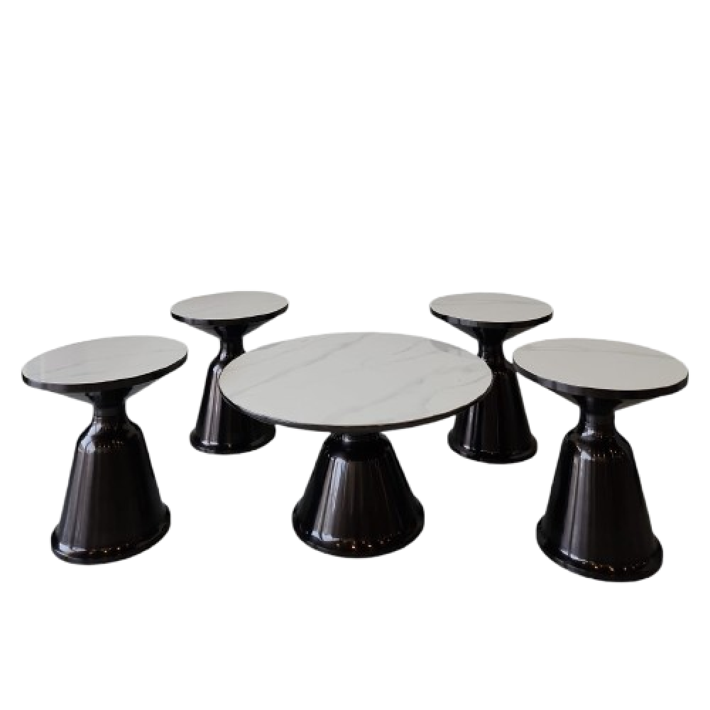 أضف لمسة فاخرة إلى ديكور منزلك مع طقم الطاولة العصري المكوّن من طاولة مركزية وأربع طاولات جانبية، بتصميم مستوحى من التوازن بين الفخامة والبساطة.